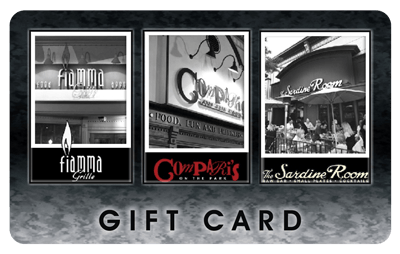 A Gift Card to Compari’s on the Park, Fiamma Grill and Bar and The Sardine Room is the perfect present! With the option to dine at any of our three signature restaurants, our gift card is sure to please even the pickiest of palates. From Pizzas & Pastas to Steaks & Small Plates, and everything in between, our Gift Card gives the gift of variety.